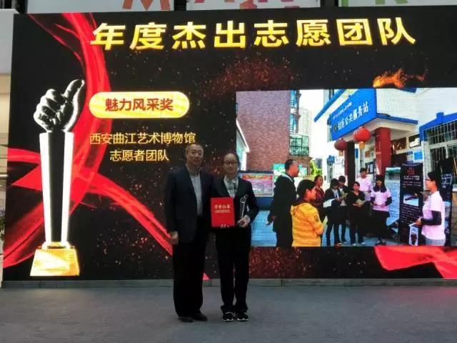 12月2日下午,在第32个“国际志愿者日”即将到来之际,2017曲江旅游志愿者颁奖典礼在曲江创客大街隆重举行。西北大学776net必赢官网志愿者讲解队作为西安曲江艺术博物馆高校志愿者讲解团队之一参加了本次典礼。